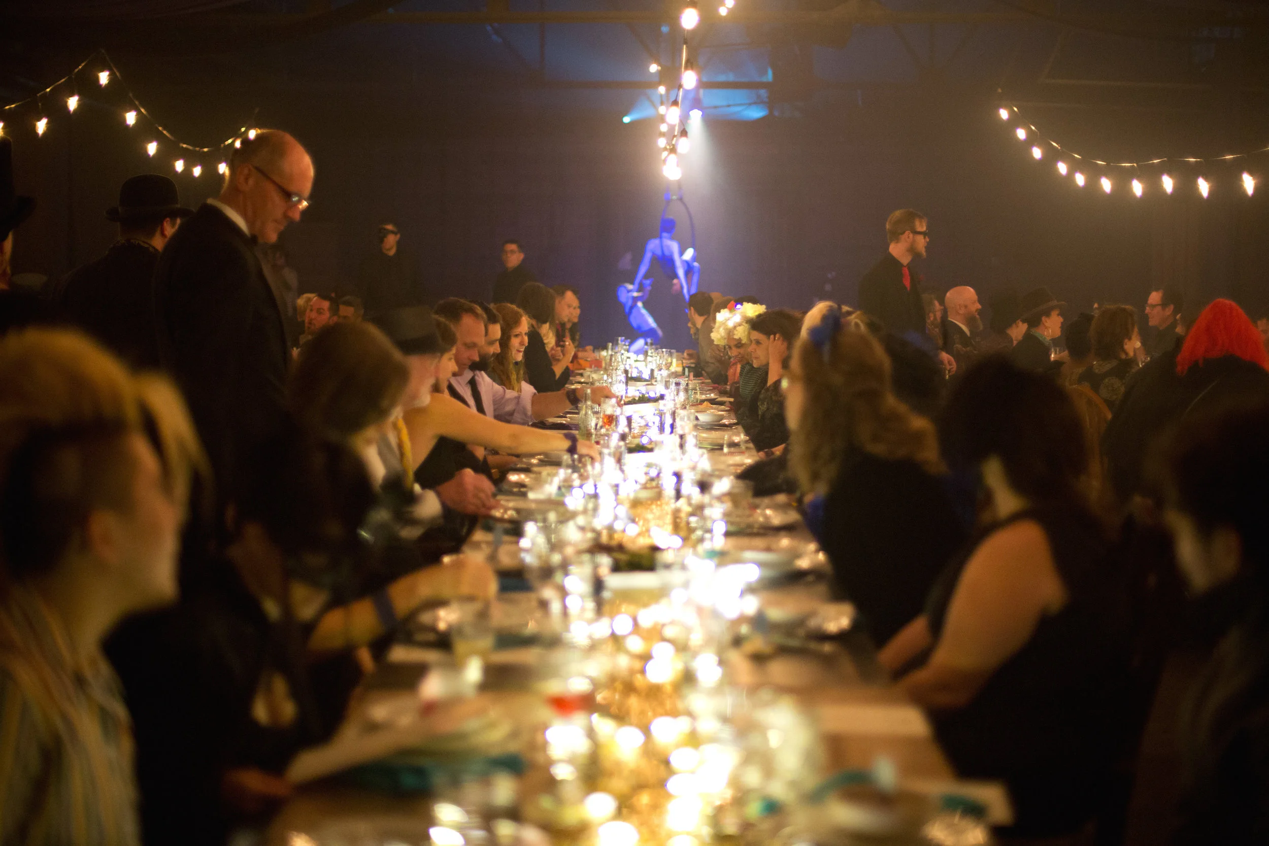 Just before Midnight on November 4, 2017, Factory Obscura and guests gathered at a top-secret location for an intimate and extraordinary celebration of our artists and the completion of our first installation, SHIFT at Current Studio. The Midnight Dinner was the first Factory Obscura production, offering an immersive, interactive, and performative experience for a limited number of participants. Guests wore their most elaborate, bizarre, or mysterious attire and were transported into a magical, alternate world.